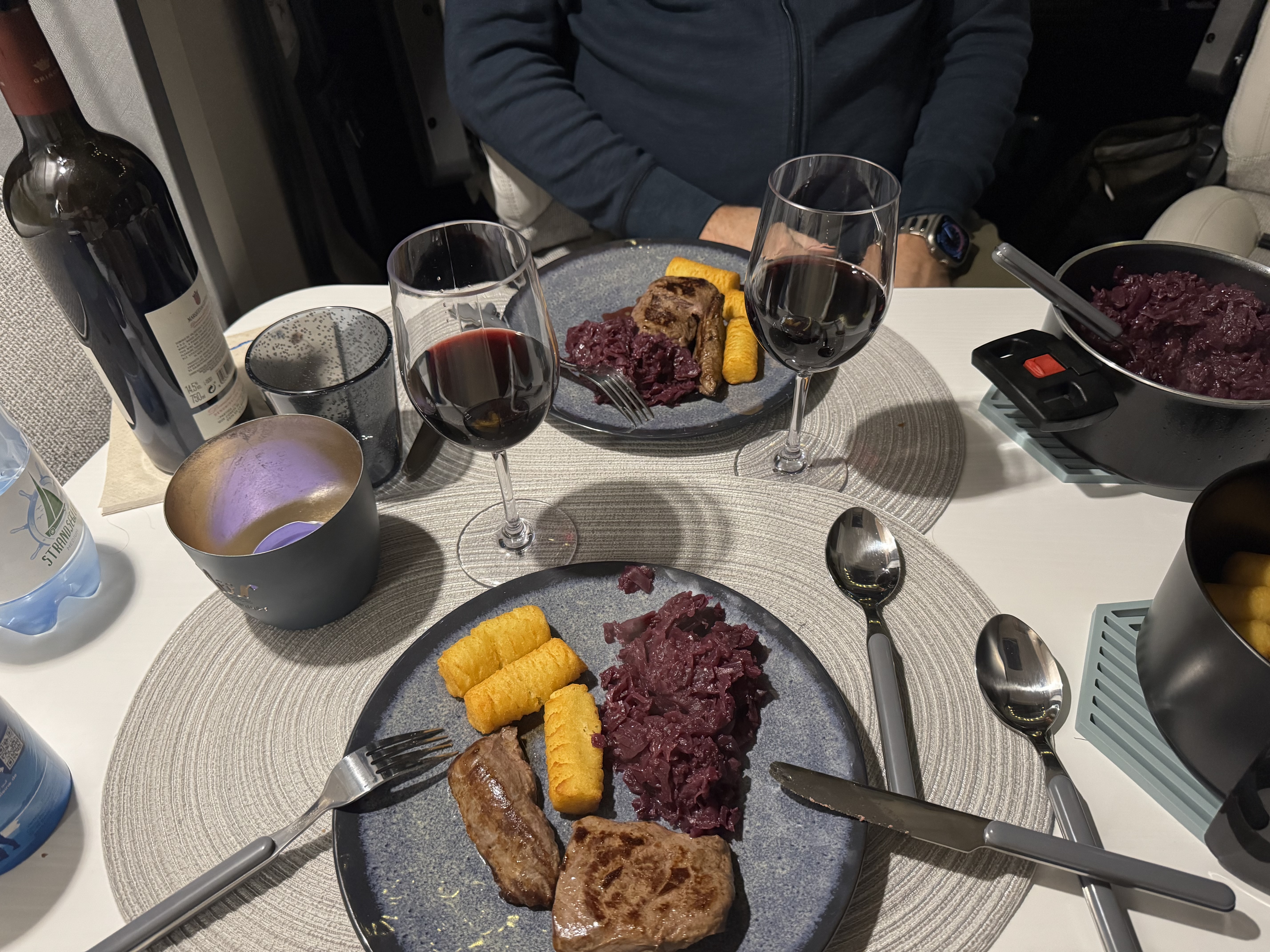 Viele Restaurants machen Anfang Dezember Urlaub , um sich auf den Weihnachts,- und Sylvesteransturm vorzubereiten, aber wir hatten zwei schöne Abendessen im “ Coast“ in Rantum und in der berühmten „Sansibar“. Für frische Brötchen war durch die fussläugig erreichbare Bäckerei “ Lund“ in Hörnum auch gesorgt. Ein toller Service des Hörnumer Campingplatzes sind die kostenlosen Bustickets. So kamen wir bequem von A nach B, Iyk lernte seine erste Busfahrt kennen und wir genossen eine schöne Flasche Wein.